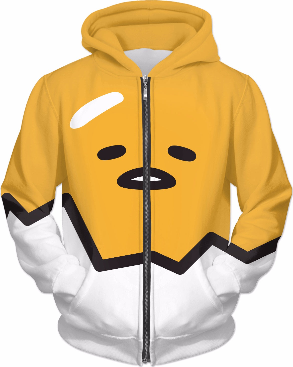 Rage On! and Sanrio have come together to bring you official Gudetama™ products to live your laziest life.  This zip-up hoodie allows you to embody the world's laziest egg. (C)2013, 2018 SANRIO CO., LTD. Used Under License.