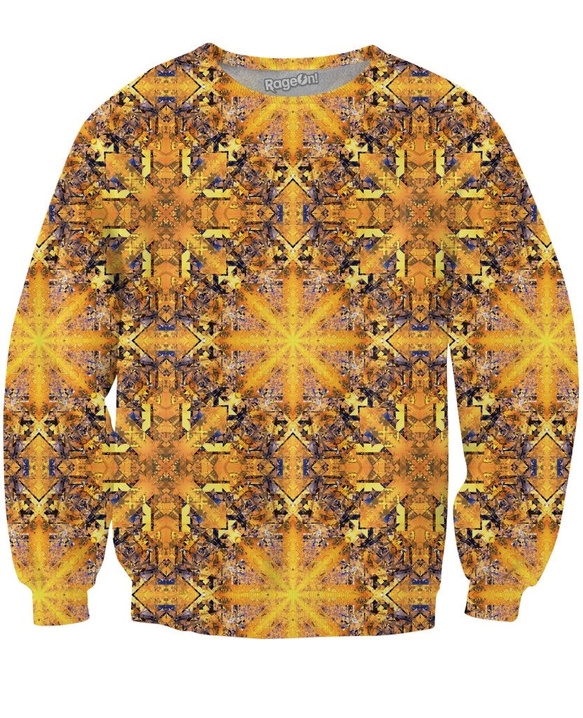 Check out this Infinite Chaos Crewneck Sweatshirt by Carl Brown! This all-over print makes it look like you're looking into a kaleidoscope of gold blue and brown! Get your's now!
