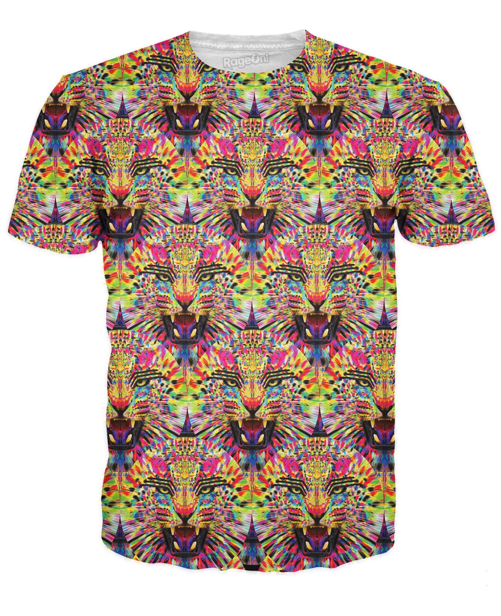 Check out this SICK all-over print Jaguar Haze T-Shirt designed by Larry Carlson! This tee portrays jaguars in a psychedelic way with every color you could imagine!