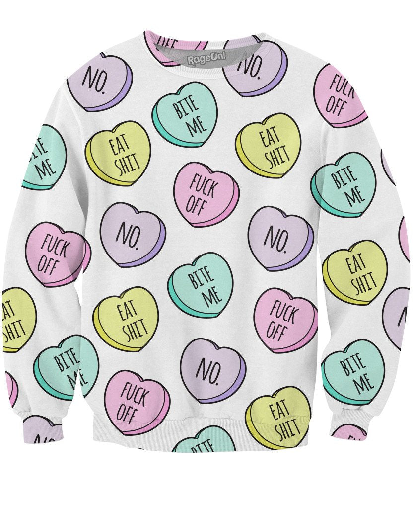 Show the world how you really feel with this all-over-print Mean Candy Hearts Crewneck Sweatshirt. Get this premium jumper today and wear your inky black heart on your sleeve.