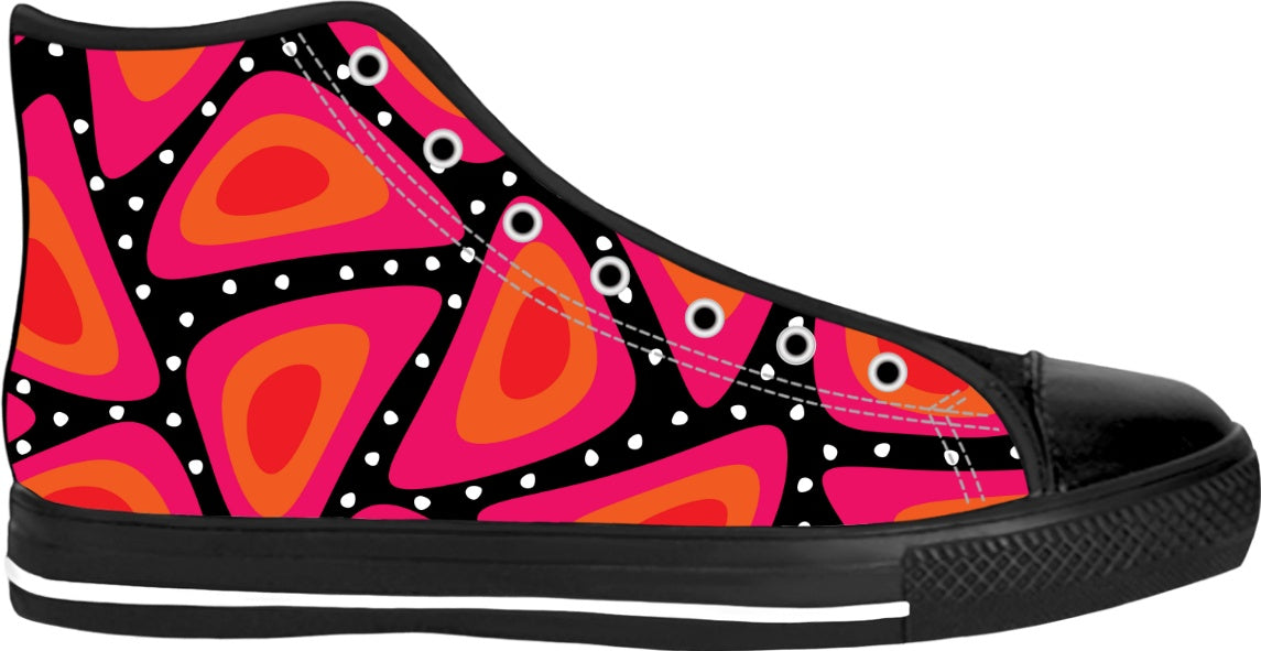 A fruit inspired design. pips, dots, slices, red, pink, black, white, modern, pattern, dots, bright