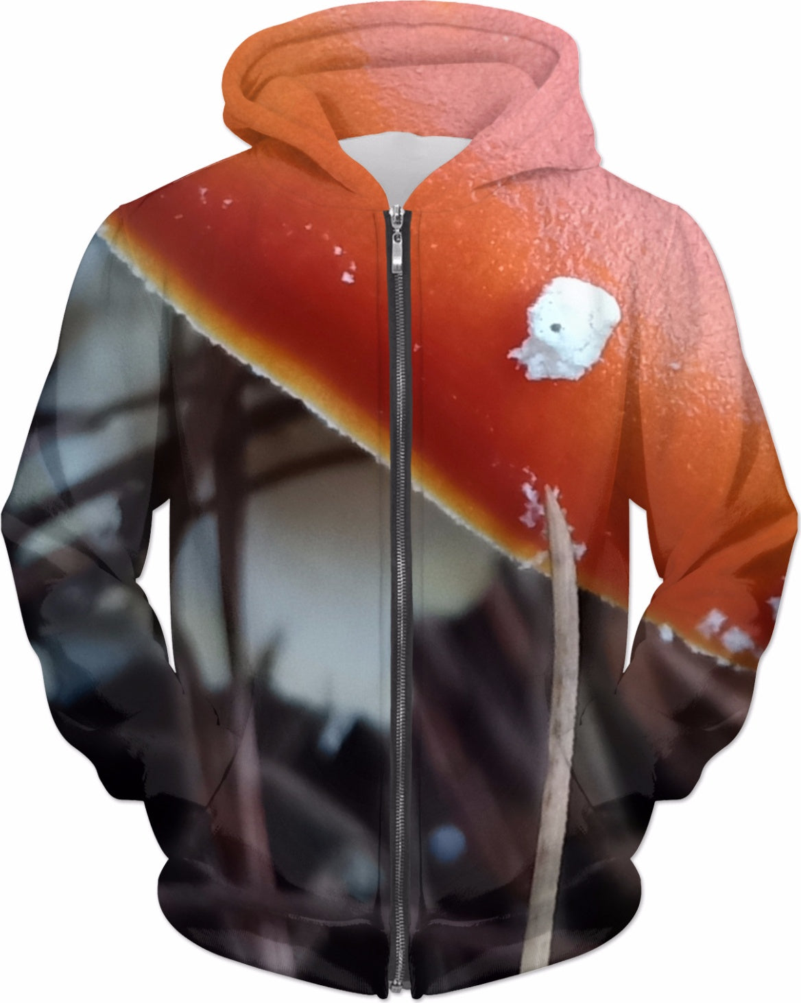 Super close up macro shot of the red and white spotted either deadly or magic mushroom in the woods