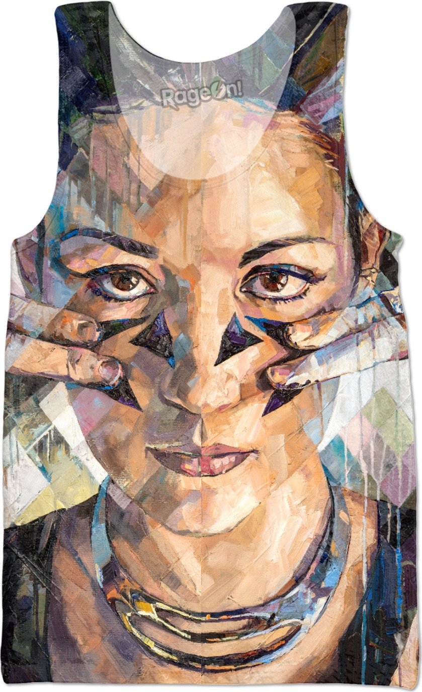 This painting is part of my War Paint series - expressive, colorful portraits of warrior-like figures coating themselves in vibrant brushstrokes. These paintings draw upon the historical and cultural significance and symbolism of body painting to represent the construction of identity. Model: Melissa Forman
