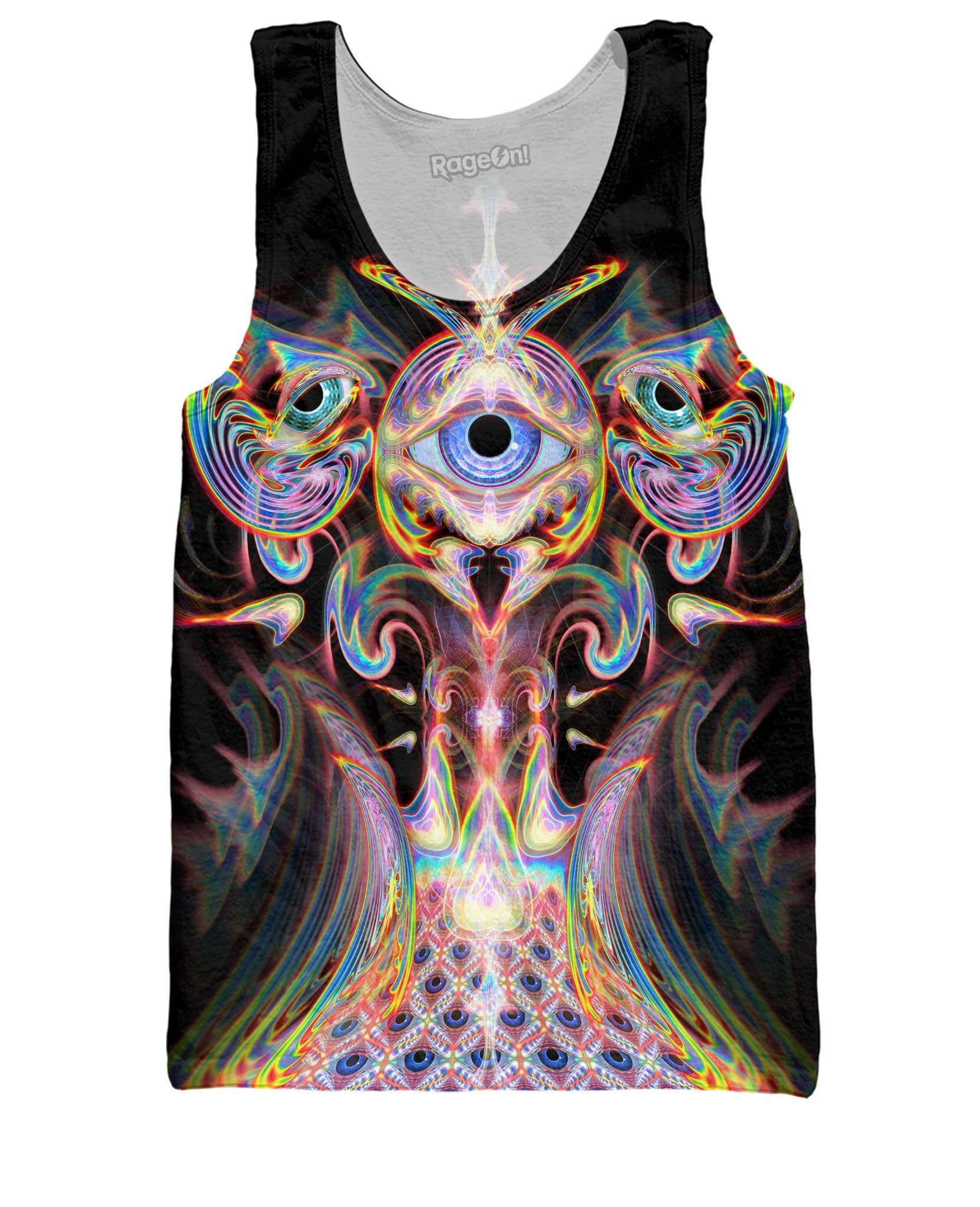 Check out this sick, all-over-print Unfolding Vision Tank Top! This fully sublimated tank features an original design of three eyes with a psychedelic form holding them up! Get this vibrant and trippy design today, only on RageOn!